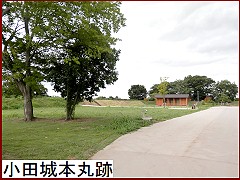 (左)が見える。 鎌倉時代から戦国時代にかけて勢力を持った小田氏の居城で、南北1km、東西700mという広大な平山城であったが何度も戦火に遭い慶長7年に廃城。