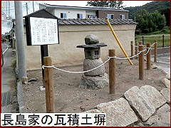 街道に戻り数分。駐車場の一角に石灯篭がポツンと立っているが ここは旧名主・長島家の跡地。燈籠の後ろにある