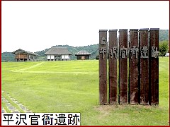 (右)。国指定遺跡となっており、その頃の税であった稲や麻布を保管する高床式の倉庫が復元されている。
