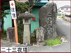 「二十三夜石橋供養塔」と刻まれた石塔がある。