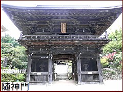 (右)。家光公によって寄進された初代随神門は火災で焼失。現在の門は文化8年